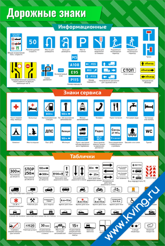 Дорожные знаки: информационные, знаки сервиса и таблички — развивающий плакат