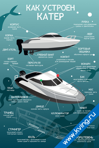 Устройство катера и название его частей — развивающий плакат