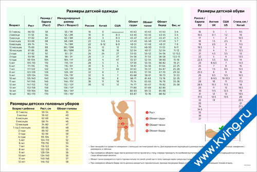 Размеры детской одежды, обуви, головных уборов — развивающий плакат