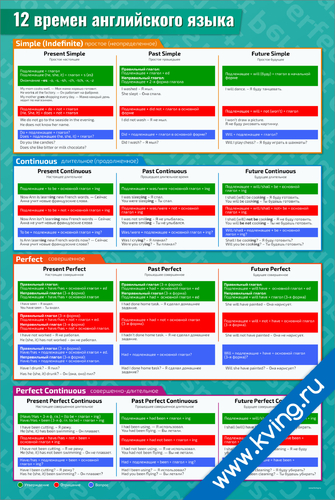 12 времен английского языка — плакат по английскому языку
