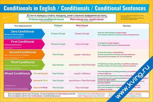 Conditionals in English / Conditionals / Conditional Sentences — плакат по английскому языку