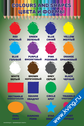 Цвета — плакат по английскому языку, с переводом