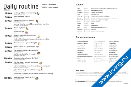 Распорядок дня — плакат на английском языке, с примерами и переводом