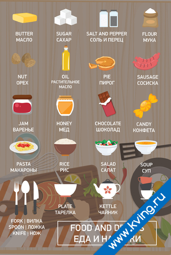 Еда и напитки II — плакат по английскому языке, с переводом