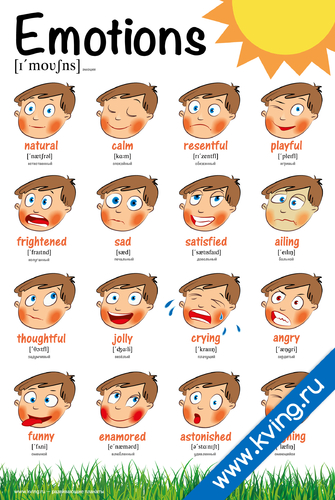 Эмоции — плакат по английскому языку, с переводом и транскрипцией