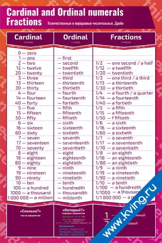 Количественные и порядковые числительные. Дроби — плакат по английскому языку