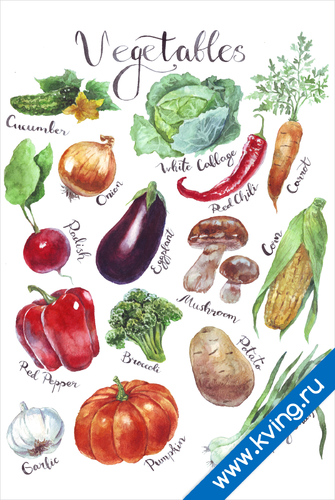 Овощи II — плакат на английском языке, с примерами