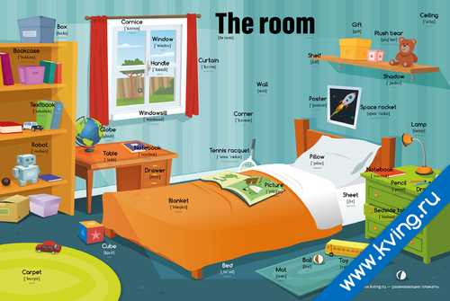 Комната — плакат по английскому языку, с транскрипцией