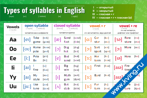 Типы слогов в английском языке — плакат по английскому языку