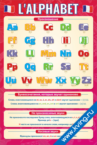 Французский алфавит с транскрипцией и произношением — плакат по французскому языку