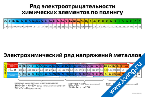 Ряд электроотрицательности и напряжений химических элементов и металлов по полингу — плакат по химии и физике