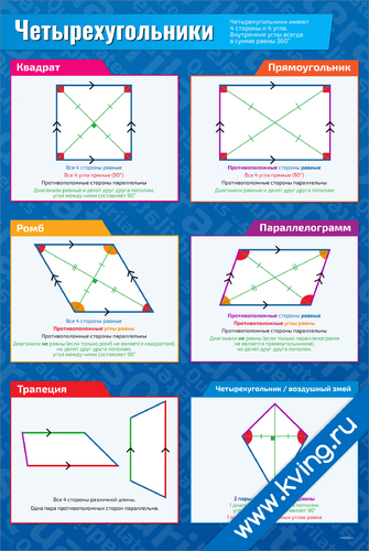Четырехугольники — плакат по математике, алгебре, геометрии, тригонометрии