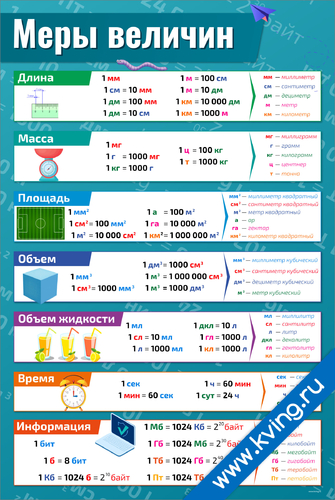 Меры величин — развивающий плакат