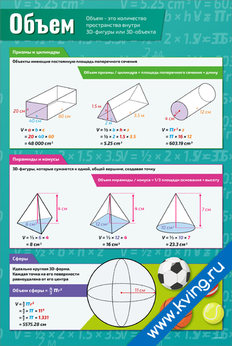 Объем — плакат по математике, алгебре, геометрии, тригонометрии