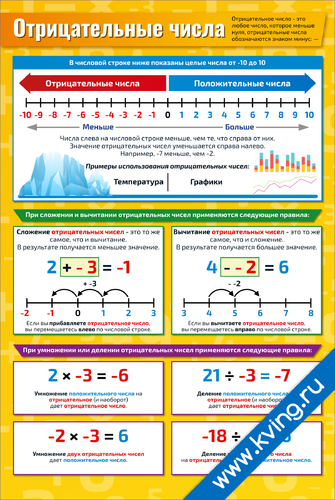 Отрицательные числа — плакат по математике, геометрии