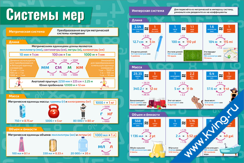 Системы мер — плакат по математике, алгебре, геометрии, тригонометрии