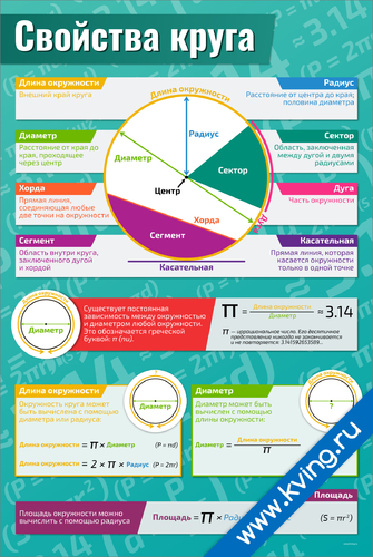 Свойства круга — плакат по математике, алгебре, геометрии, тригонометрии
