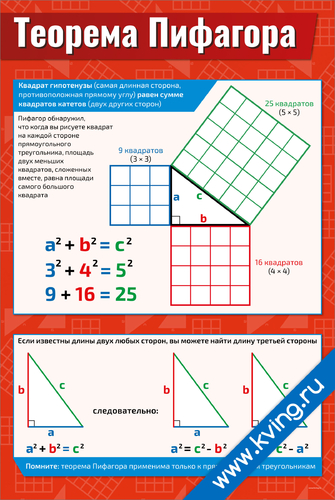 Теорема Пифагора — плакат по математике, алгебре, геометрии, тригонометрии