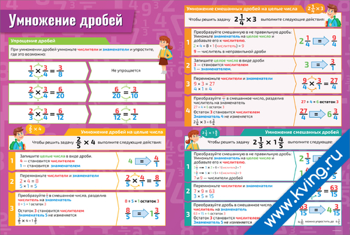 Умножение дробей — плакат по математике, алгебре, геометрии, тригонометрии