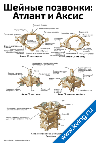 Шейные позвонки: Атлант и Аксис — медицинский плакат