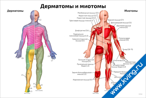 Дерматомы и миотомы — медицинский плакат