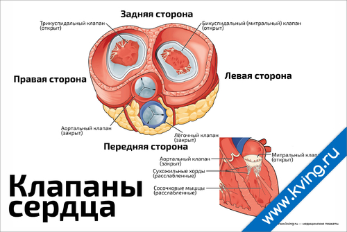 Клапаны сердца в разрезе — медицинский плакат