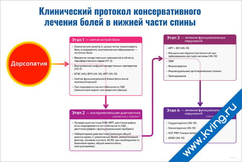 Клинический протокол консервативного лечения болей в нижней части спины: дорсопатия — медицинский плакат