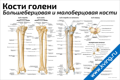 Кости голени: большеберцовая и малоберцовая кости — медицинский плакат