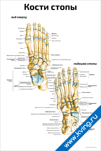 Кости стопы: вид сверху, подошва — медицинский плакат
