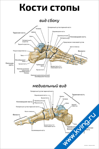 Кости стопы: медиальный вид и вид сбоку — медицинский плакат