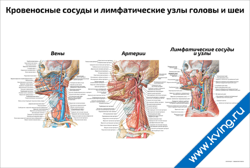 Кровеносные сосуды и лимфатические узлы головы и шеи — медицинский плакат
