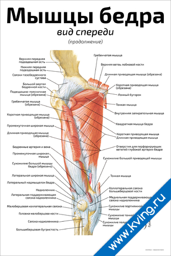 Мышцы бедра: вид спереди (продолжение) — медицинский плакат
