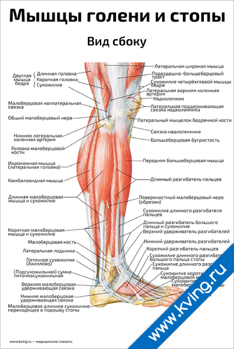 Мышцы голени и стопы, вид сбоку — медицинский плакат