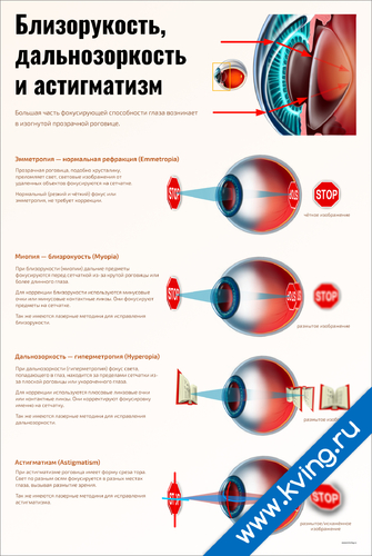 Близорукость, дальнозоркость и астигматизм — медицинский плакат по офтальмологии