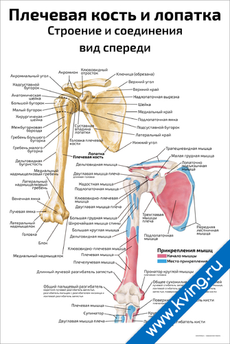 Плечевая кость и лопатка, строение и соединения: вид спереди — медицинский плакат