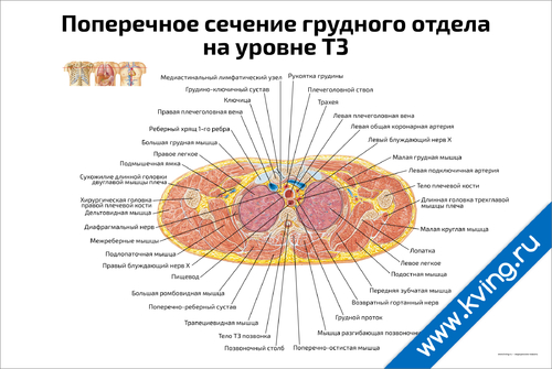 Поперечное сечение грудного отдела на уровне Т3 — медицинский плакат