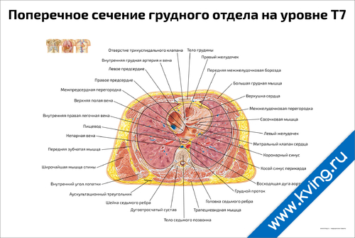 Поперечное сечение грудного отдела на уровне Т7 — медицинский плакат