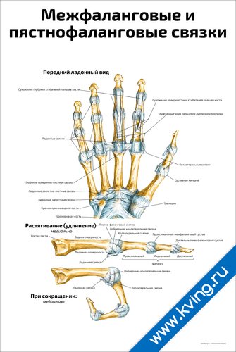 Межфаланговые и пястнофаланговые связки — медицинский плакат