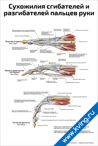 Сухожилия сгибателей и разгибателей пальцев руки — медицинский плакат
