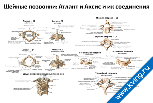 Шейные позвонки: Атлант и Аксис и их соединения — медицинский плакат