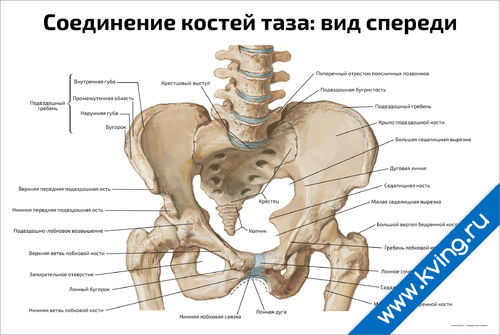 Соединение костей таза: вид спереди — медицинский плакат