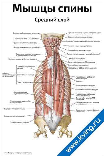 Мышцы спины, средний слой — медицинский плакат