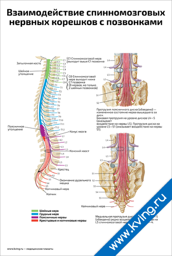 Взаимодействие спинномозговых нервных корешков с позвонками — медицинский плакат