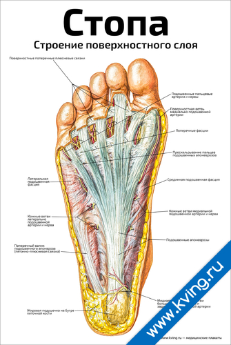 Стопа, строение поверхностного слоя — медицинский плакат