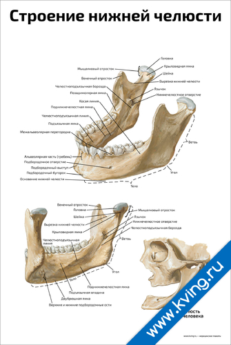 Строение нижней челюсти человека — медицинский плакат