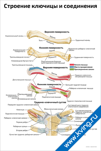 Строение ключицы и соединения — медицинский плакат