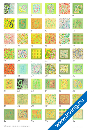 Таблица для исследования цветоощущения: Рабкина — медицинский плакат