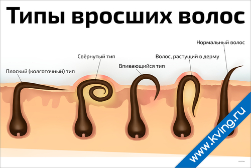 Типы вросших волос — косметологический плакат