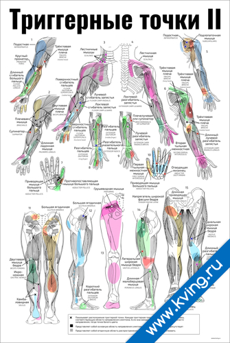 Триггерные точки II — медицинский плакат по массажу, аккупунктуре, остеопатии и мануальной терапии