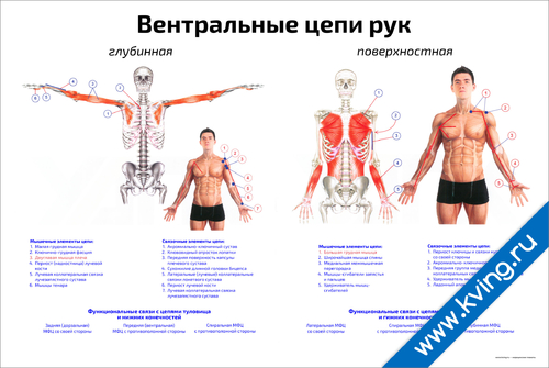 Вентральные цепи рук: глубинная, поверхностная — медицинский плакат